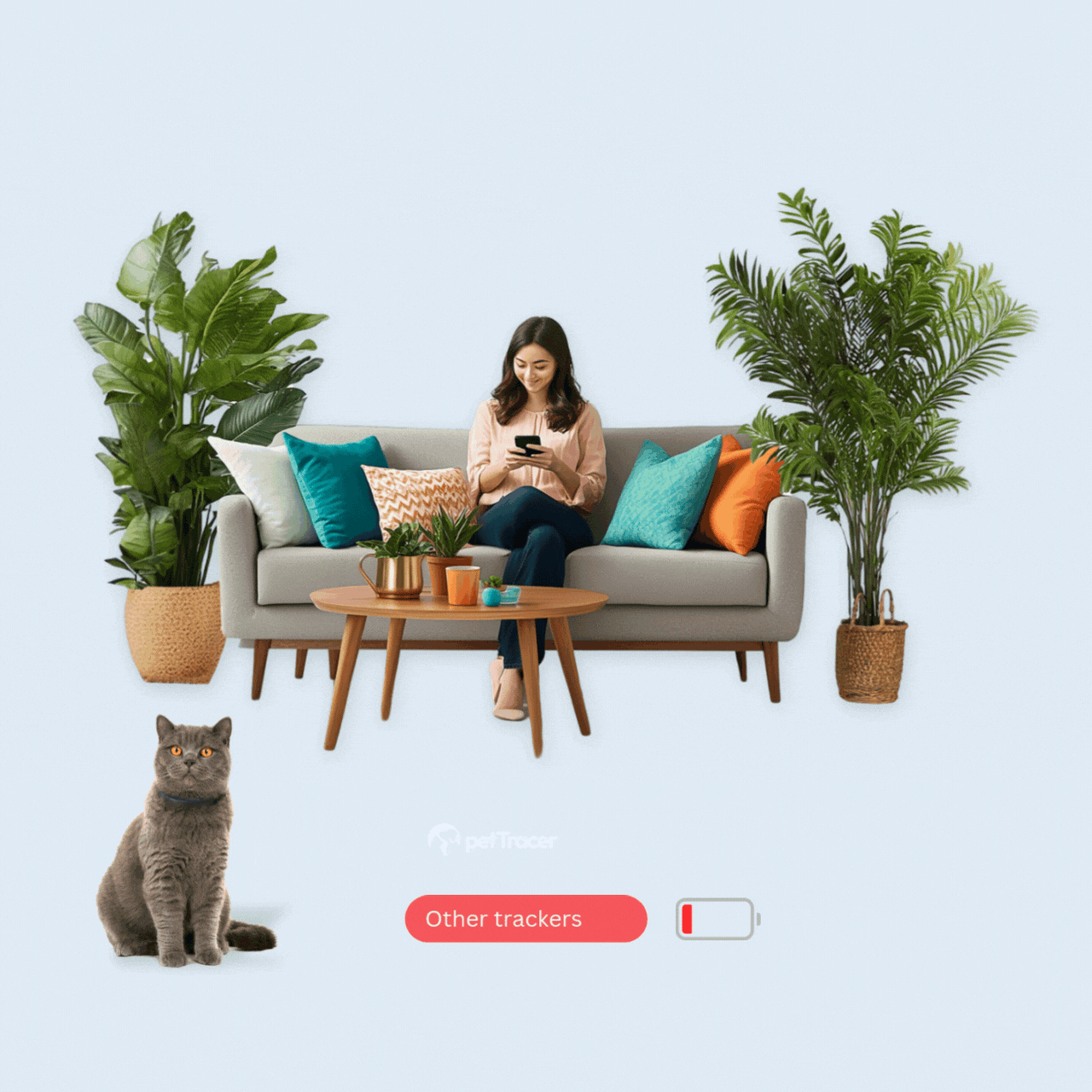 petTracer can last up to 30 days per charge, so the battery is there when you need to find your cat.