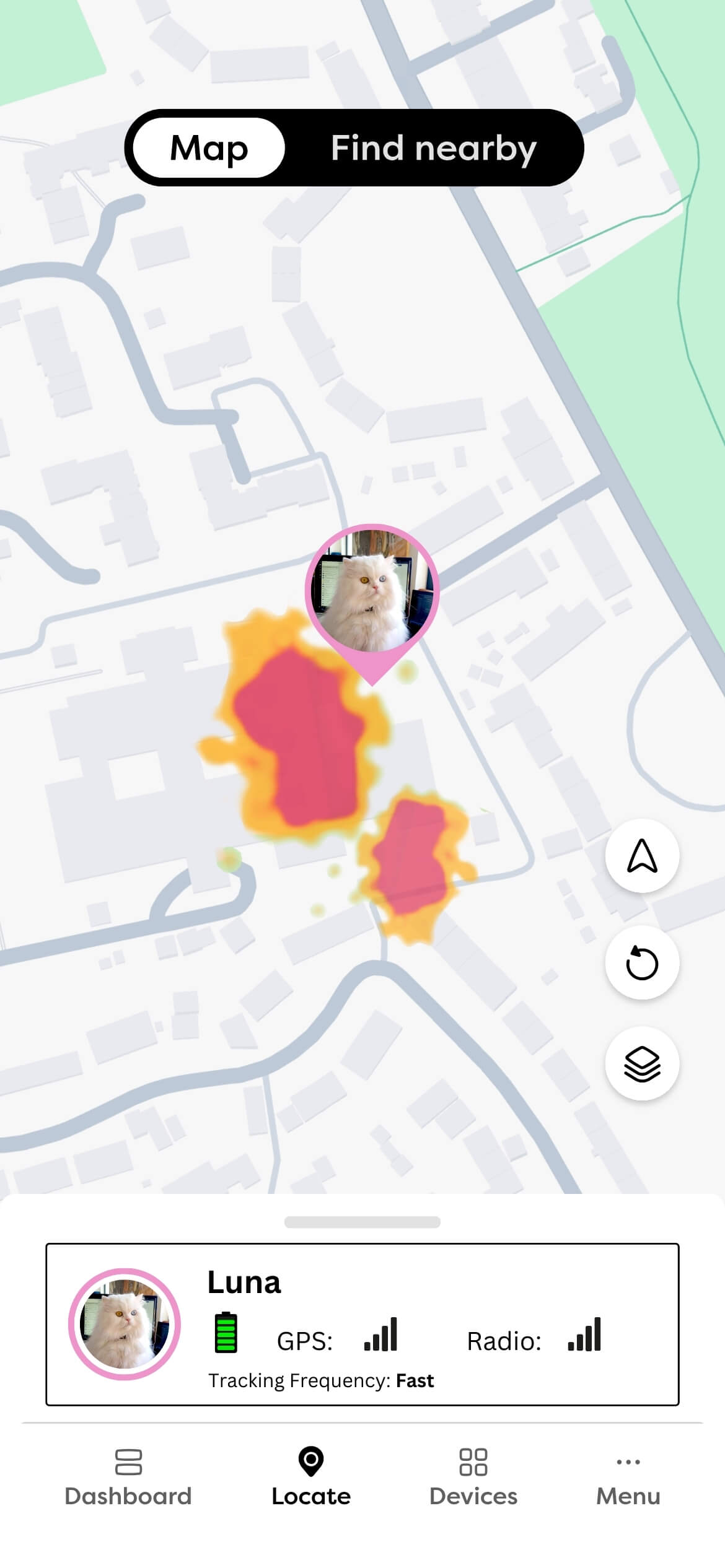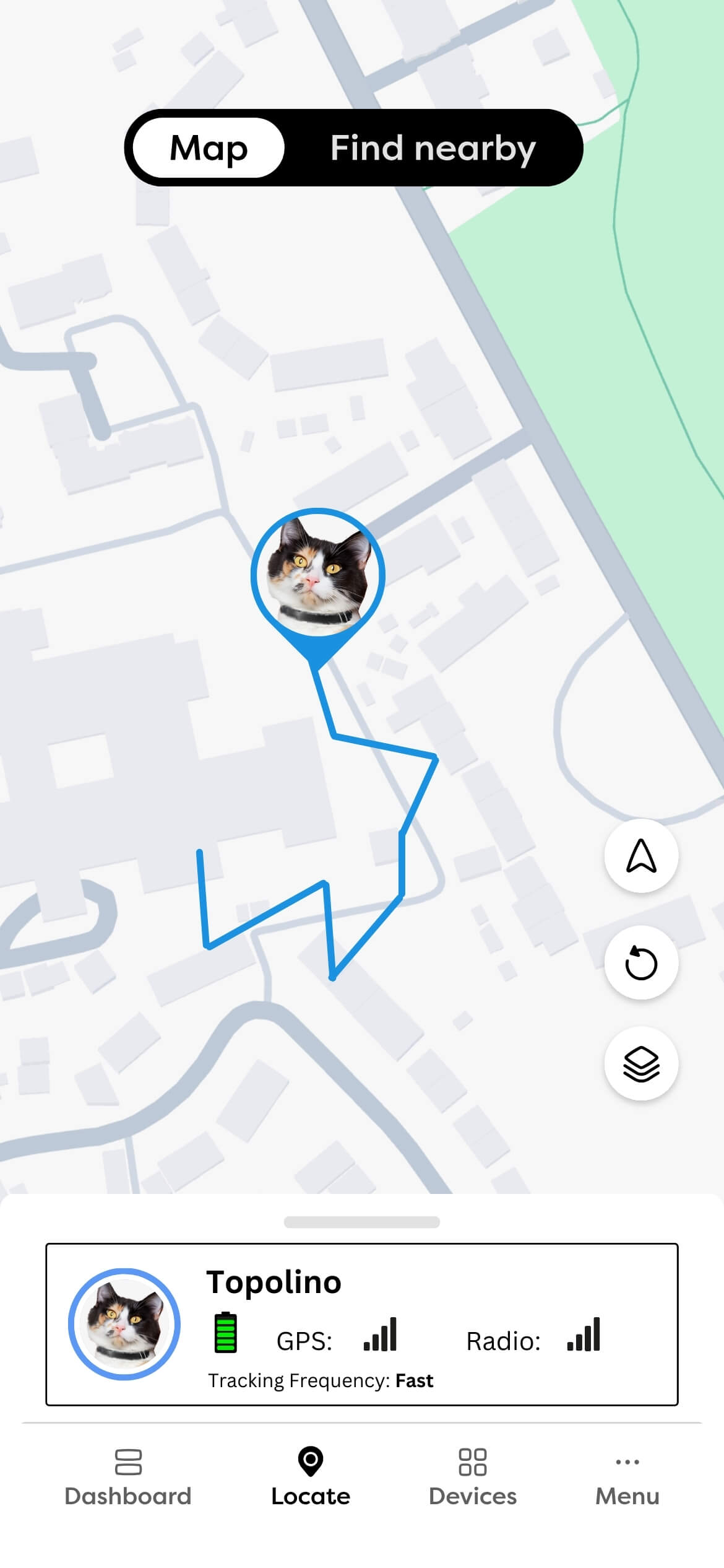 No GPS device or collar can do this for certain. petTracer gives you the highest possible chance of finding your cat when you need to. With petTracer you will get to know your cat’s territory and favourite places. These are the locations where you would begin looking for your pet. Additionally, with our radio search technology you can even find your cat in places without GPS signal.